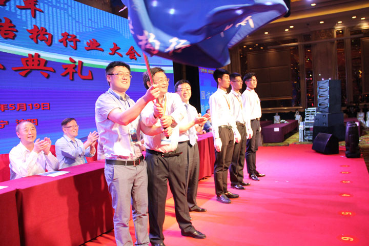 最后,洪長(zhǎng)禧總經(jīng)理將象征著年會(huì)承辦權(quán)的會(huì)旗交到2018年的承辦單位雅百特領(lǐng)導(dǎo)手中,大家相約2018年全國(guó)建筑鋼結(jié)構(gòu)行業(yè)大會(huì)再相聚!