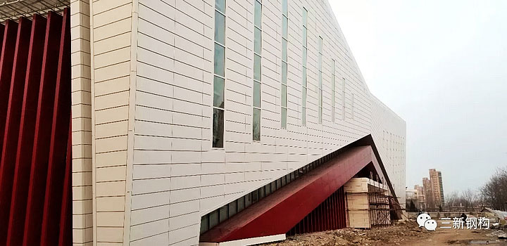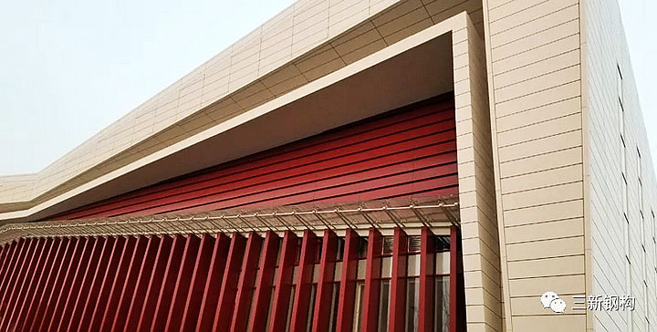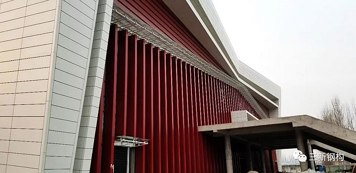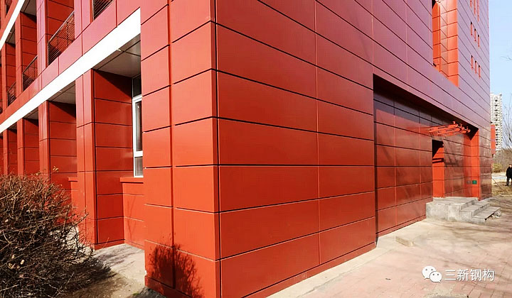 2、項(xiàng)目采用開放式金屬幕墻系統(tǒng),凹槽、洞口、窗口、弧形造型、傾斜面折線、波紋造型的方案設(shè)計(jì),金屬板采用磚紅色金屬板,生產(chǎn)后直接發(fā)運(yùn)至現(xiàn)場安裝,金屬板顏色種類豐富且減少噴涂過程,縮短生產(chǎn)工期;