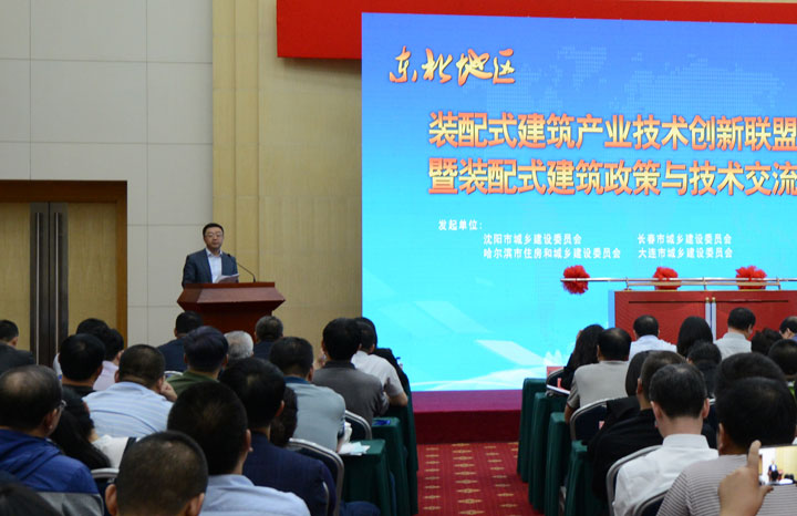 5月18日在遼寧大廈禮堂同期舉辦的“東北地區(qū)裝配式建筑產(chǎn)業(yè)技術(shù)創(chuàng)新聯(lián)盟成立暨裝配式建筑政策與技術(shù)交流大會(huì)”與博覽會(huì)相映生輝。住建部建筑節(jié)能與科技司副司長(zhǎng)郭理橋、遼寧省住房和城鄉(xiāng)建設(shè)廳副廳長(zhǎng)李海洋參加活動(dòng)并講話(huà)。洪長(zhǎng)禧會(huì)長(zhǎng)代表沈陽(yáng)市裝配式建筑協(xié)會(huì)在大會(huì)上致辭,并與住建部及省廳領(lǐng)導(dǎo)共同完成聯(lián)盟的成立啟動(dòng)儀式。