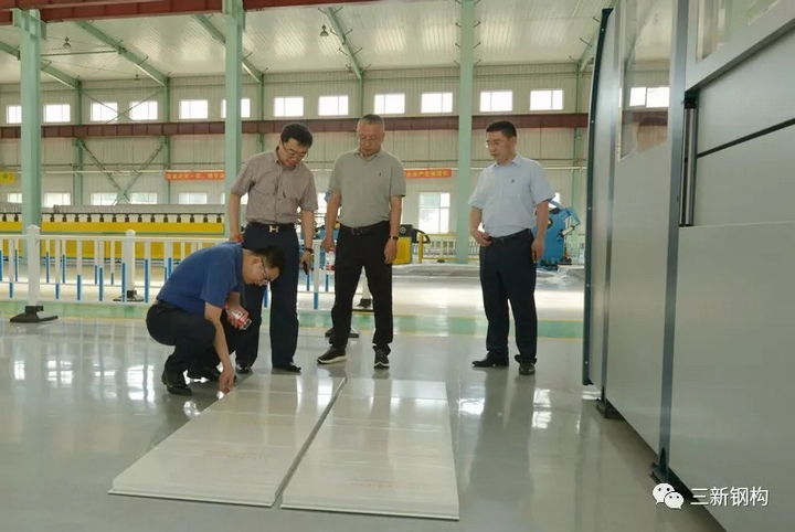 省廳領(lǐng)導(dǎo)在公司總經(jīng)理洪長禧的陪同下參觀了公司裝配式建筑及幕墻生產(chǎn)基地和生產(chǎn)線,并對三新裝配式建筑實體模型和部品進(jìn)行了詳細(xì)的了解。曹廳長、王處長對三新裝配式鋼結(jié)構(gòu)建筑體系及先進(jìn)的生產(chǎn)裝備給予了高度的評價,認(rèn)為產(chǎn)品設(shè)計理念、制作工藝、安裝水平達(dá)到國內(nèi)領(lǐng)先。