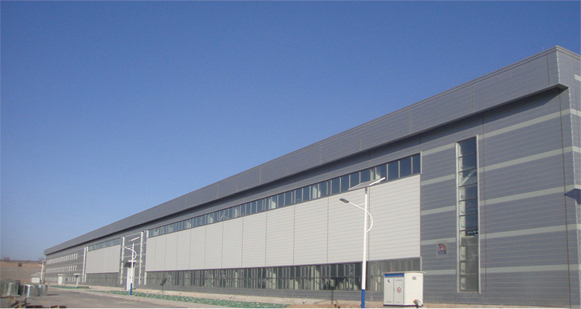 該項目建筑面積23萬㎡,由29個單體廠房構(gòu)成,跨度24~27m,100t吊車梁,主鋼結(jié)構(gòu)2.2萬噸,具有規(guī)模大、單體多、運輸距離遠、交叉作業(yè)多、現(xiàn)場環(huán)境惡劣等特點。太原項目部協(xié)同生產(chǎn)技術(shù)人員,對470屋面板生產(chǎn)的操作平臺等安裝設(shè)備及工裝進行了技術(shù)改造,極大提高生產(chǎn)效率,同時降低了設(shè)備移動的運輸成本。通過公司各部門的密切合作,該項目順利保質(zhì)保量按期完工。
