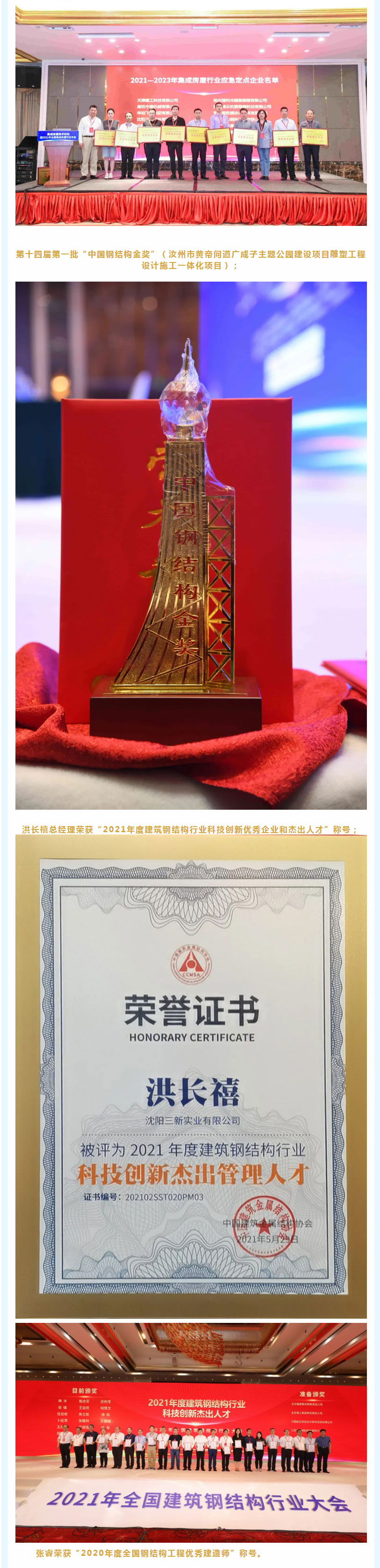綠色引領(lǐng),再創(chuàng)輝煌——三新集團參加“2021年全國建筑鋼結(jié)構(gòu)行業(yè)大會”載譽歸來