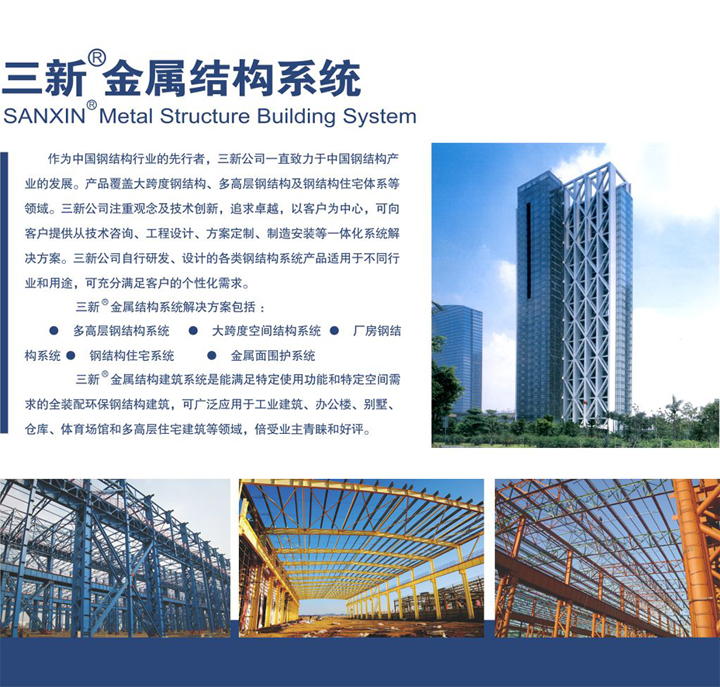三新集團(tuán)是國(guó)內(nèi)知名的金屬結(jié)構(gòu)建筑系統(tǒng)、建筑幕墻系統(tǒng)、開放式金屬幕墻系統(tǒng)、索膜結(jié)構(gòu)系統(tǒng)設(shè)計(jì)、制作、施工及咨詢服務(wù)...